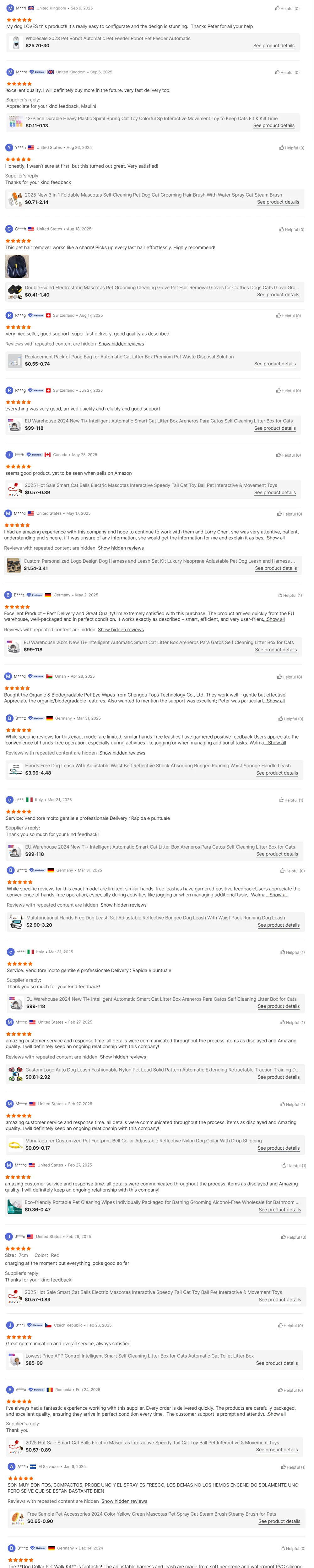 Productos principales:Caja de arena automática para gatos, comedero automático para mascotas, bolsa para caca de perro, toallitas para mascotas, cepillo para el cuidado de mascotas
